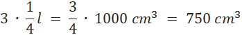 Oblicz, ile centymetrów sześciennych zawierają trzy kwaterki.
