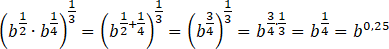 Zapisz liczby znajdujące się po pierwiastkami w postaci potęg. Zauważ, że pierwiastek o danym stopniu możesz zamienić na potęgę o takiej samej liczbie w mianowniku.
