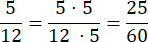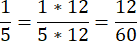 rozszerzyć do mianownika 60, należy licznik i mianownik pomnożyć przez wynik z działania: 60 : 5 = 12, czyli przez 12: