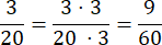 rozszerzyć do mianownika 60, należy licznik i mianownik pomnożyć przez wynik z działania: 60 : 20 = 3, czyli przez 3: