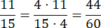 rozszerzyć do mianownika 60, należy licznik i mianownik pomnożyć przez wynik z działania: 60 : 15 = 4, czyli przez 4: