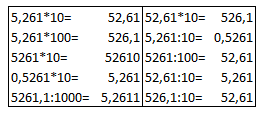 Przy dzieleniu ułamków dziesiętnego przez liczbę 10, 100, 1000 itd. Przesuń przecinek w lewo o tyle miejsc, ile jest zer, przy mnożeniu ułamków dziesiętnego przez liczbę 10, 100, 1000 itd. Przesuń przecinek w prawo o tyle miejsc, ile jest zer.