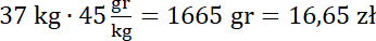 Na początek oblicz wagę truskawek zebranych przez Karolinę do wagi truskawek Basi dodaj 1,5 kg. Wagi truskawek pomnóż przez 45 groszy, a wynik zapisz w złotówkach. Zwróć uwagę, nie ma ułamków groszy, więc zaokrąglij wynik do pełnych groszy, czyli do 0,01 złotówki.