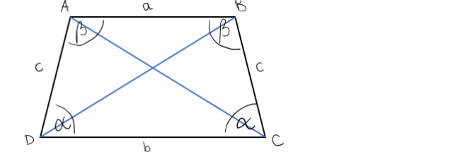 Narysuj rysunek, zaznacz na nim kąty oraz boki jak na rysunku powyżej i zauważ, że w tym trapezie występują trójkąty podobne (trójkąty ADC i BDC), zatem z podobieństwa tych trójkątów zapisz, że odpowiadające boki są sobie równe, czyli bok BD jest równy boku AC, co należało udowodnić w twierdzeniu 4.