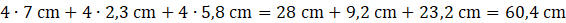 W tym zadaniu musisz policzyć sumę długości krawędzi prostopadłościanu o wymiarach żeby policzyć, ile drutu potrzeba do zbudowania jego modelu.