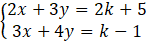W tym zadaniu musisz znaleźć takie wartości parametru k, dla których liczby będące rozwiązaniami układu równań, będą spełniały zależność 1 < x + y ≤ 3.