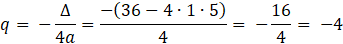 Aby rozwiązać zadanie, w pierwszej kolejności oblicz ze wzorów współrzędne wierzchołka paraboli. Następnie wyznacz wzór prostej nachylonej do osi OX pod kątem 135° (jej współczynnik kierunkowy jest równy tangensowi kąta 135°) i przechodzącej przez wierzchołek paraboli. Następnie rozwiąż układ równań, którego rozwiązaniami są współrzędne punktów przecięć prostej z parabolą. Jednym z tych punktów jest wierzchołek paraboli, a drugim szukany punkt A.