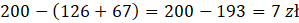 Oblicz resztę, którą Basia otrzymała od kasjerki, jeśli zapłaciła 200 zł, kupując buty zimowe za 126 zł i spodnie za 67 zł.