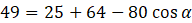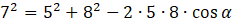Zapisz twierdzenie cosinusów dla kąta leżącego naprzeciw boku o długości 7 cm. Z równania wyznacz wartość tego kąta równą 60