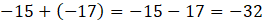 Wskaż sumę oraz różnicę liczb –15 i –17.