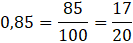 Podane ułamki dziesiętne 0,85; 2,75; 1,125 zamień na ułamki zwykłe nieskracalne lub liczby mieszane.