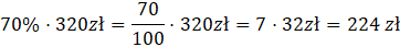Oblicz koszt kombinezonu po obniżce, jeśli obniżono go o 30%, a na początku kosztował 320 zł.