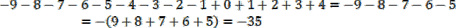 Te liczby to: -9, -8, -7, -6, -5, -4, -3, -2, -1, 0, 1, 2, 3, 4.