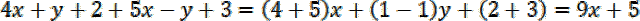 Przy dodawaniu wyrażeń, uprość je. Zsumuj współczynniki przy tych samych literach oraz wyrazy wolne.