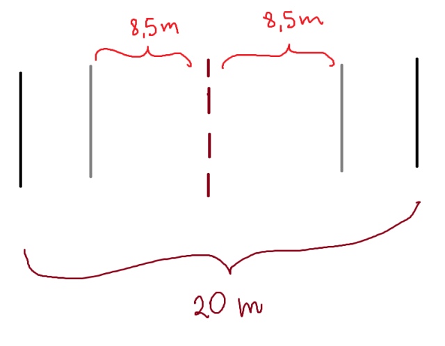 Od szerokości 20 m musisz odjąć dwa razy 8,5 m, a następnie wynik podzielić przez 2.