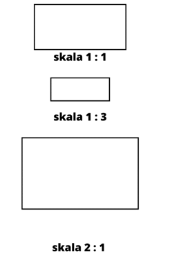 W tym zadaniu musisz narysować prostokąt trzy razy mniejszy (skala 1 : 3) oraz dwa razy większy (skala 2 : 1) od początkowego prostokąta.