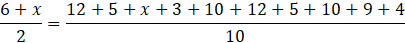 Zacznij od obliczenia wartości liczby x. Skoro średnia arytmetyczna zestawu danych 12, 5, x, 3, 10, 12, 5, 10, 9, 4 wynosi