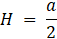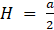 W tym zadaniu musisz obliczy wysokością H ostrosłupa prawidłowego czworokątnego, którego ściana boczna jest nachylona do płaszczyzny podstawy pod kątem równym 45°, a a jest długością krawędzi podstawy.