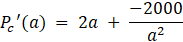 Pochodna funkcji przyjmuje wartość 0 dla a = 10.