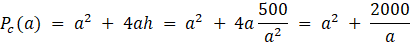 Wyznacz wzór na obwód objętość i pole całkowite, połącz otrzymane wzory, policz pochodną i wyznacz argumenty, dla której przyjmuje wartość 0: