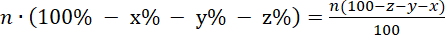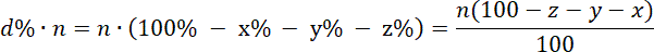 100% - x% - y% - z% = d%, gdzie d% określa, ile procent uczniów pozostaje w domu.