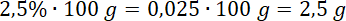 W 100 g znajduje się nie mniej niż 2,5% tłuszczu. Oblicz, ile to gram: