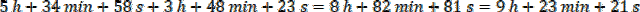 Dodaj osobno sekundy, minuty i godziny. Zacznij od sekund, ponieważ 21 jest mniejsze niż 23, to znaczy, że dodając x, dodano również jedną minutę: