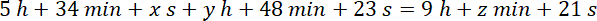 Pierwsza pracowała 5 godzin 34 minuty i x sekund, po czym zastąpiła ją druga i dokończyła pracę w y godzin 48 minut i 23 sekundy. Cały tekst został przepisany w 9 godzin z minut i 21 sekund.