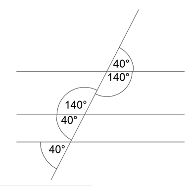 W tym zadaniu wykorzystaj pojęcie kątów przyległych, wierzchołkowych, odpowiadających oraz naprzemianległych.
