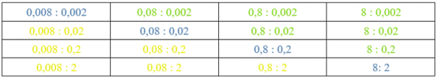 W tym zadaniu musisz wskazać odpowiednie wyniki, których wartością progową jest cyfra 4. Aby ułatwić sobie obliczenia, możesz przesunąć przecinki w taki sposób, ale operować wyłącznie na liczbach całkowitych.