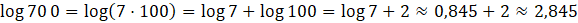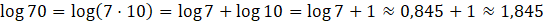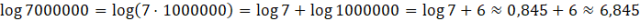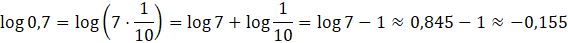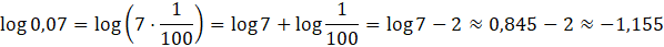 Każda liczba logarytmowana w podanych logarytmach jest iloczynem liczby 7 i potęgi liczby 10, dzięki czemu możemy zapisać każdy logarytm w postaci sumy logarytmu dziesiętnego liczby 7 oraz logarytmu dziesiętnego liczby 10. Gdy już zapiszesz każdy z logarytmów w postaci sumy, wystarczy, że wykorzystasz przybliżenie z polecenia