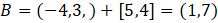 Aby rozwiązać to zadanie musisz skorzystać z działania na wektorach. Aby znaleźć punkt B do współrzędnych punktu A dodamy wektor