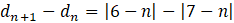 Ponieważ otrzymałeś tutaj różnicę wartości bezwzględnych, to nie możesz jednoznacznie określić jaki znak będzie miał wynik tego odejmowania. Ale zauważ, że oba moduły różnią się jedynie liczbą, od której odejmuje się n. Dla małych n (mniejszych od 6), większą wartość otrzymasz w drugim module, a więc wynik będzie ujemny. Ale gdy weźmiesz n większe od 6 (np. 10), to większa liczba będzie pod pierwszą wartością bezwzględną, a więc wynik wyjdzie dodatni. Oznacza to, że ten ciąg jest malejący do pewnego momentu (n=6), a dalej jest rosnący. Taki ciąg nie jest w ogóle monotoniczny, a tym bardziej rosnący.
