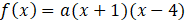 Miejsca zerowe to argumenty, dla których funkcja przecina oś OX. Możesz z wykresu odczytać, że te punkty to x = -1 oraz x = 4. Więc wzór tej funkcji kwadratowej będziesz mógł zapisać jako: