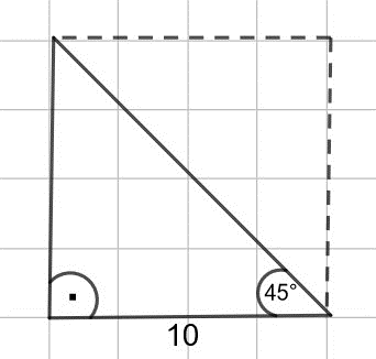 Na początku oblicz trzeci kąt trójkąta i zauważ że trójkąt jest trójkątem równoramiennym, a co więcej jest on połową kwadratu (dzieląc wzdłuż przekątnej -> przekątna kwadratu = przeciwprostokątna trójkąta). Wiedząc, że długość przekątnej kwadratu o obok