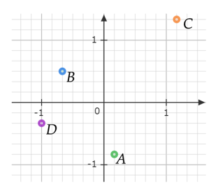 Sporządź układ współrzędnych, ustal odpowiednią jednostkę oraz oznacz punkty: