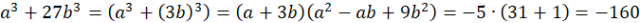 W tym zadaniu musisz obliczyć a3 + 27b3, jeśli a + 3b = -5 i ab = – 1.