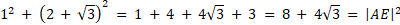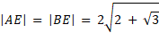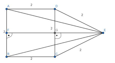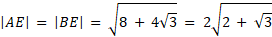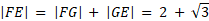 Zacznij od obliczenia |GE|, czyli wysokości trójkąta równobocznego EDC. Następnie oblicz długość |FE|. Pozwoli ci to skorzystać z twierdzenia Pitagorasa w trójkącie AFE, aby obliczyć długość boku |AE|. |AE| = |BE|. Kąt