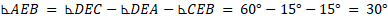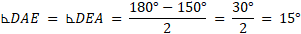 , bo jest to suma kąta prostego kwadratu i kąta trójkąta równobocznego. Zauważ, że trójkąt ADE jest równoramienny, czyli kąty znajdujące się przy jego podstawie będą równe. Trójkąty ADE i BEC są przystające, więc kąty