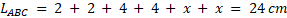 Przyjmij oznaczenia jak na rysunku. Skorzystaj z twierdzenia o odcinkach stycznych i stwierdź, że |EB| = |DB| = 4, |FA| = |AD| = x, |FC| = |CE| = 2, (COEF jest kwadratem). Oblicz długość x, korzystając z faktu, że L = 24 cm. Znając długość x, oblicz obwód czworokąta ADOF.