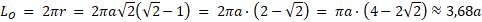 Oznacz bok kwadratu przez a i oblicz jego obwód. Zauważ, że w podanych warunkach długość okręgu jest przekątną kwadratu, którego bok (a) został pomniejszony o długość promienia tego okręgu (r).