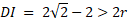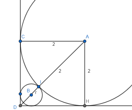 Zacznij od obliczenia długości AD jako przekątnej kwadratu. Następnie oblicz długość odcinka DI odejmując od przekątnej kwadratu promień R = 2. Kolejno zauważ, że długość DI jest większa od dwóch długości promieni. Ta nierówność doprowadzi nas do nierówności