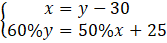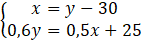 0,6y = 0,5(y – 30) + 25