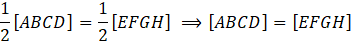 Dowód można uprościć. Wystarczy zauważyć, iż skoro czworokąt IJKL jest rozpięty zarówno na czworokącie ABCD, jaki i EFGH, to jego pole jest równe połowie zarówno czworokąta ABCD, jak i EFGH. Zatem wyjściowe czworokąty mają równe pola.