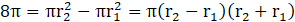 Pole pierścienia oblicz, jako różnicę między polem dużego koła a mniejszego: