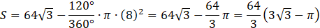 Szukane pole jest różnicą pól trójkąta i wycinka kołowego opartego na łuku AB: