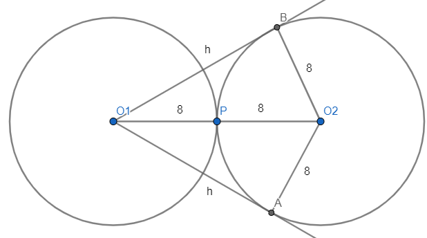 Z rysunku widać, iż trójkąty prostokątne O1O2B i O1O2A są połówkami trójkąta równobocznego o wysokości h. Wysokość ta wynosi: