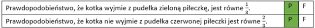 | Prawdopodobieństwo, że kotka wyjmie z pudełka zieloną piłeczkę, jest równe