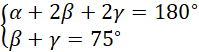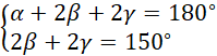 Wykorzystujemy sumę kątów wewnętrznych w trójkącie by ułożyć równania, które pozwolą nam wyznaczyć miarę kąta