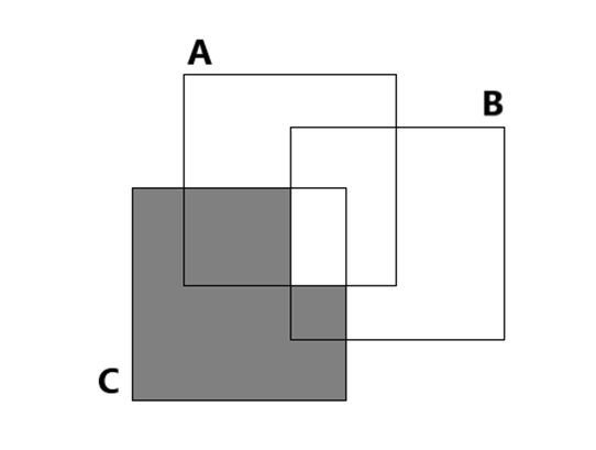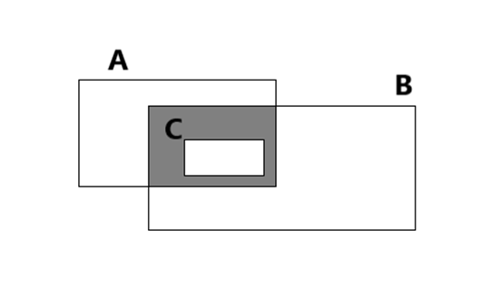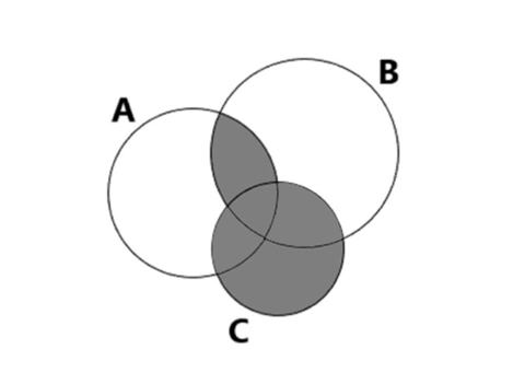 – do części wspólnej zbiorów A i B dodano zbiór C